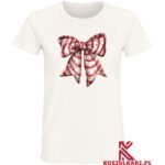 Zachwycająca i stylowa – Kokarda Świąteczna w czerwono-białe paski z zielonymi akcentami dodaje charakteru i świątecznego blasku, czyniąc tę koszulkę idealnym wyborem na świąteczne przyjęcia lub jako strój codzienny w grudniu.