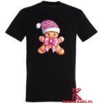 Koszulka z uroczym pierniczkowym człowieczkiem w różowej kokardzie, świątecznej czapce i ozdobnymi detalami to idealna propozycja na Boże Narodzenie. Świąteczny design przyciąga uwagę swoją słodką estetyką i jest świetnym wyborem na przyjęcia, spotkania rodzinne, czy zimowe wyjścia. Słodki Pierniczek To doskonały dodatek do garderoby, który podkreśla radosny nastrój świąt.