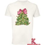 Ta koszulka to idealny wybór dla wszystkich, którzy pragną dodać odrobinę świątecznej magii do swojej garderoby. Nadruk przedstawiający piękną choinkę z urokliwą różową kokardą to doskonały sposób na wyrażenie radości z nadchodzących świąt. Niezależnie od tego, czy planujesz spotkanie z rodziną, czy świąteczne przyjęcie, ta koszulka z pewnością przyciągnie spojrzenia i wprowadzi wszystkich w radosny nastrój.