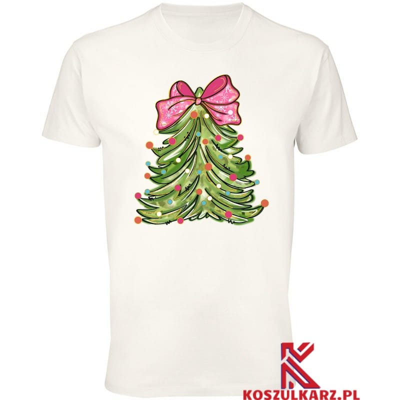 Choinka z różową kokardą to symbol świątecznej atmosfery, pełnej miłości i radości. Jej kolorowy wzór emanuje pozytywną energią i zachęca do celebrowania wyjątkowych chwil. Koszulka jest doskonałym dodatkiem do Twojej świątecznej garderoby, pozwalając wyrazić swoją pasję do tego magicznego czasu w roku.