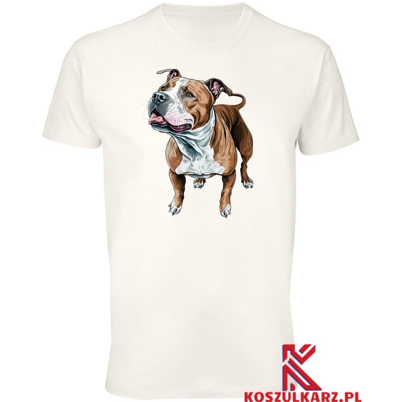Koszulka „Biało-Brązowy Pitbull” z unikalnym nadrukiem to idealny wybór dla fanów psów. Wykonana z 100% bawełny, zapewnia komfort i styl, doskonała na każdą okazję.