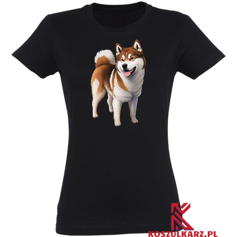 Nadruk przedstawia psa rasy Akita, symbolizującego siłę, lojalność i elegancję. Wyjątkowy wizerunek psa w pozie, która ukazuje jego dostojność i spokojną naturę, idealnie odzwierciedla cechy tej szlachetnej rasy. Akita ma charakterystyczną puszystą sierść, wyraziste oczy oraz stojące uszy, co w połączeniu z wyrafinowaną kolorystyką nadruku dodaje koszulce klasy i wyróżnia ją spośród innych. Grafika oddaje dumę i pewność siebie Akity, jednocześnie emanując spokojem i delikatnością.
