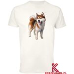 Wzór psa Akita został starannie zaprojektowany, uwzględniając nawet najdrobniejsze detale, takie jak struktura sierści czy intensywne spojrzenie. Akita stoi w lekko pochylonej pozycji, jakby czuwał nad swoim otoczeniem, co idealnie pasuje do charakteru tej rasy, znanej z lojalności i opiekuńczości. Druk cyfrowy zapewnia niezwykle realistyczne odwzorowanie grafiki – kolory są intensywne i wyraziste, a każdy szczegół został starannie oddany, dzięki czemu cała koszulka prezentuje się bardzo profesjonalnie.