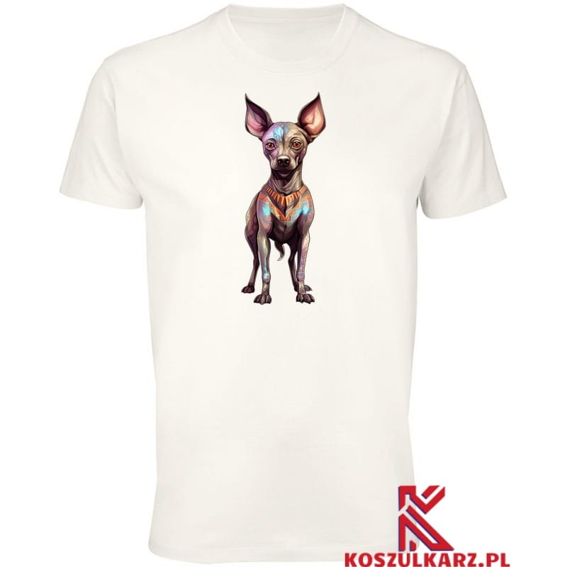 Koszulka z nadrukiem Nagiego Psa Meksykańskiego to nie tylko modny element garderoby, ale także sposób na wyrażenie swojej pasji do psów i kultury meksykańskiej, Pies Meksykański. Idealna na co dzień, do pracy, na spacer, a także jako prezent dla każdego miłośnika unikalnych ras. Wybierz jakość i styl, które docenią wszyscy miłośnicy Xoloitzcuintli!