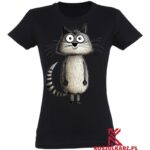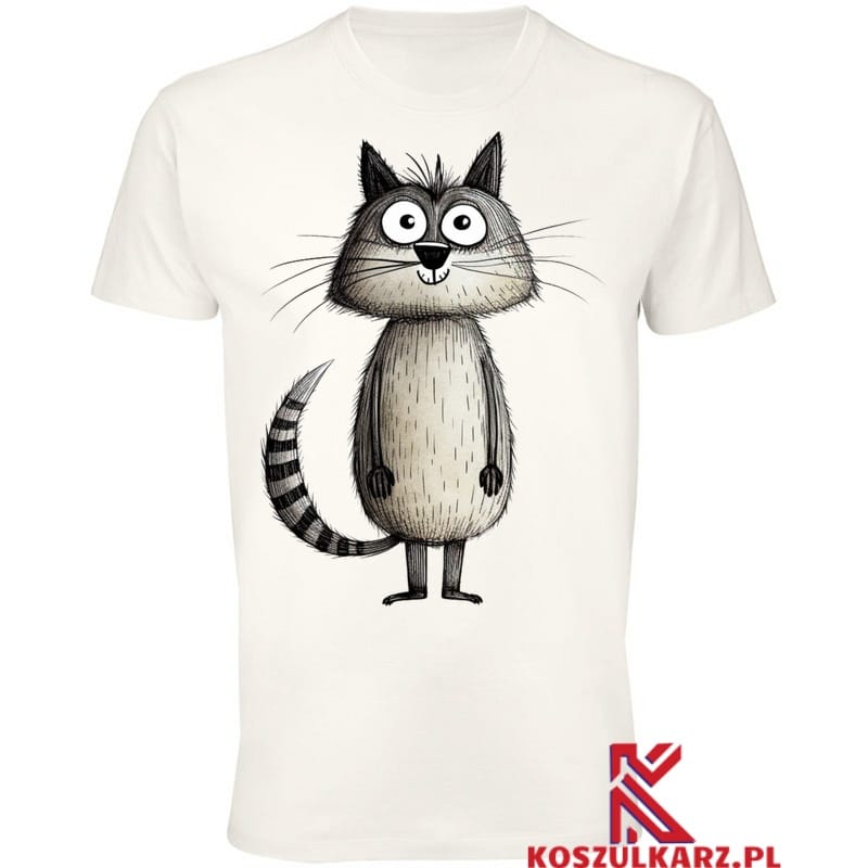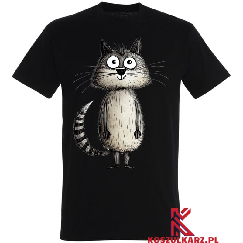 Koszulka „Szary Sympatyczny Kot” z uroczym nadrukiem to idealny wybór dla miłośników zwierząt. Wykonana z 100% bawełny, zapewnia komfort i styl, doskonała na każdą okazję.
